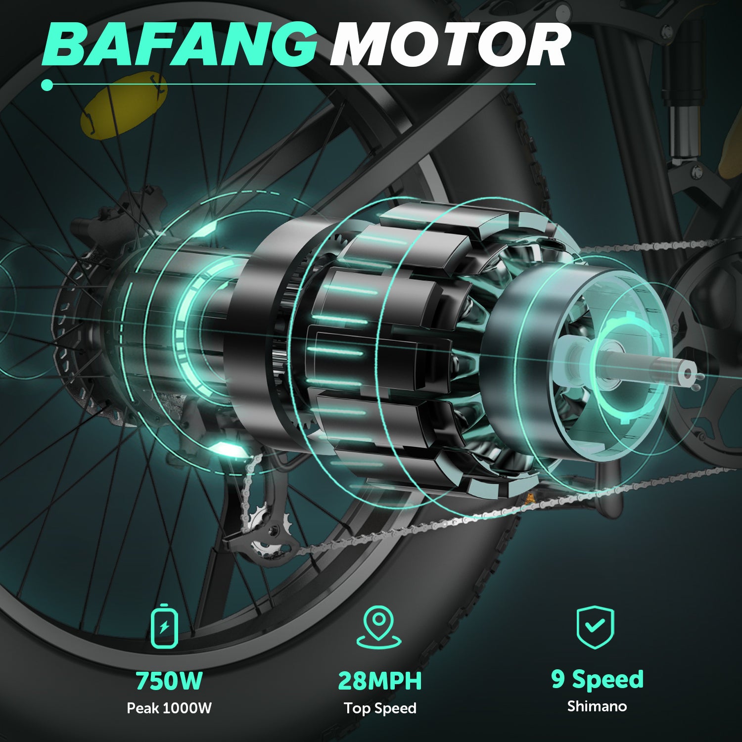 Designed for maximum comfort and safety, the alloy hydraulic lockout suspension fork absorbs shocks, making off-road rides smoother. The 26” x 4” fat tires provide excellent traction and stability, while the hydraulic brakes offer reliable stopping power in all conditions. The Shimano 9-speed gear shift system and KMC chain ensure smooth transitions and efficiency across different terrains.