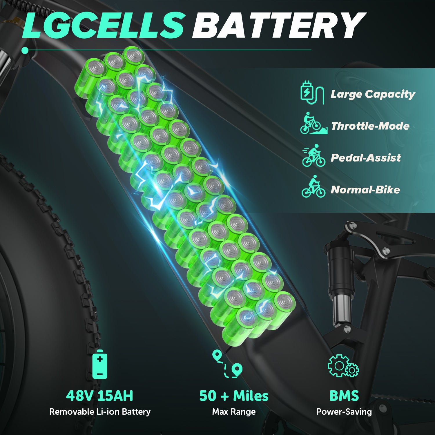 Equipped with a 48V 15Ah UL 2849-certified LG lithium battery, this e-bike offers an extended range of 88+ km with pedal assist. The 54.6V 750W FOC smart controller ensures smooth power delivery, while the 5-level intelligent pedal assist with a 12-magnet cadence sensor provides a customizable riding experience. A thumb throttle allows for effortless acceleration when needed.