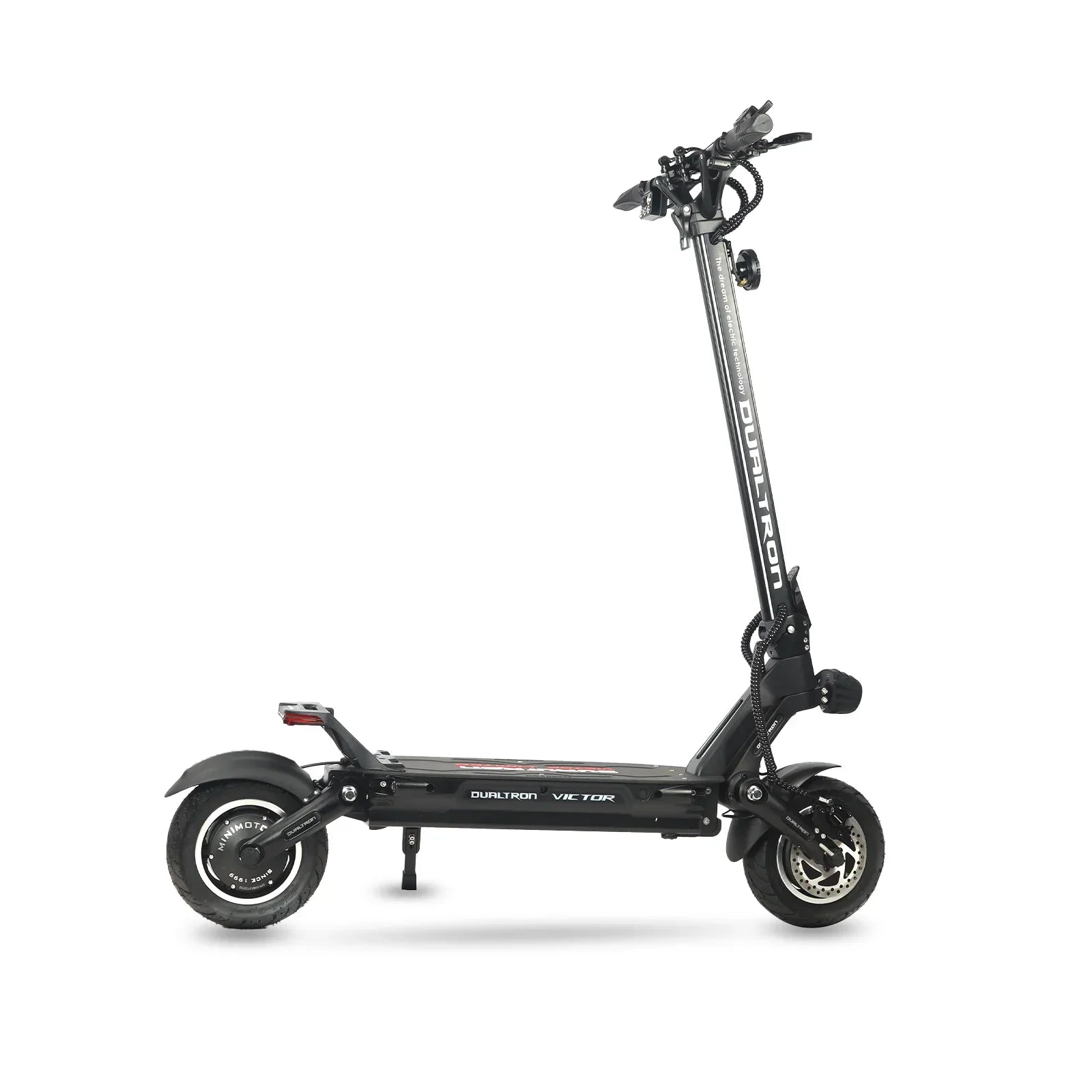 The Dualtron Victor Luxury Plus is one of the most powerful city-focused electric scooters available, offering an exceptional performance-to-price ratio. It features dual 2000W motors (4000W total), easily handling steep hills. Choose between two battery options: CN 60V28Ah (LITE) or LG 60V35Ah (PRO) with premium 21700 cells. Expect up to 50 km of range (LITE) or 80 km (PRO) under ideal conditions. For optimal battery life—up to 4 years—store the scooter in a dry environment.