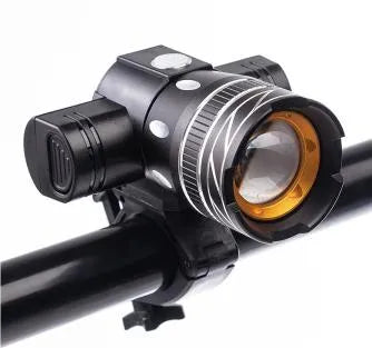Bike-scooter headlight-front light-usb rechargeable with adjustable focal point.