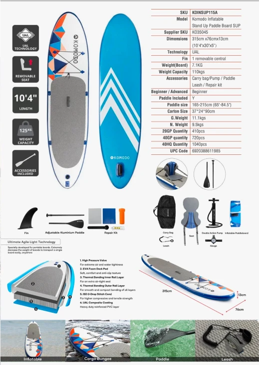 Komodo Inflatable Paddleboard list of items to include in the box: