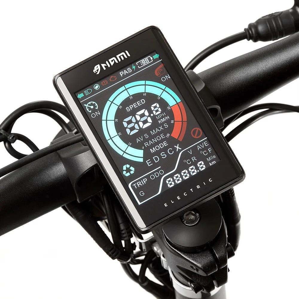 The Nami Klima is tailored for versatility, featuring a 60V 25Ah battery that strikes the perfect balance between power and efficiency. This model is ideal for everyday commutes and occasional adventurous rides, with a dual motor that provides fast acceleration and maintains high speeds. The user-friendly display interface includes an intuitive display and controls, enhancing the riding experience with simplicity and ease.