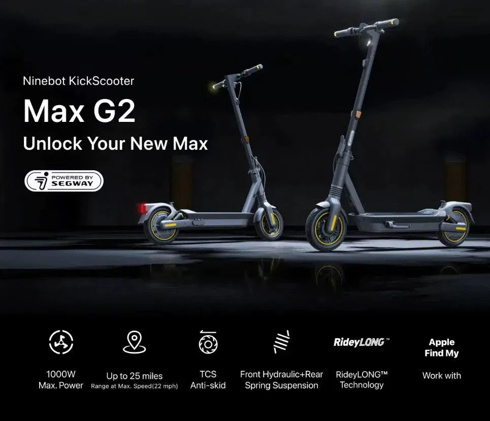 The perfect transportation solution for modern urban living. The Max G2 takes the modern KickScooter to the next level with a 900W powerful rear-wheel drive and a range of up to 25 miles (at 22 mph*). The MAX G2 also features a front and rear suspension system and traction control system, ensuring the comfort of long rides and stability on slippery roads.