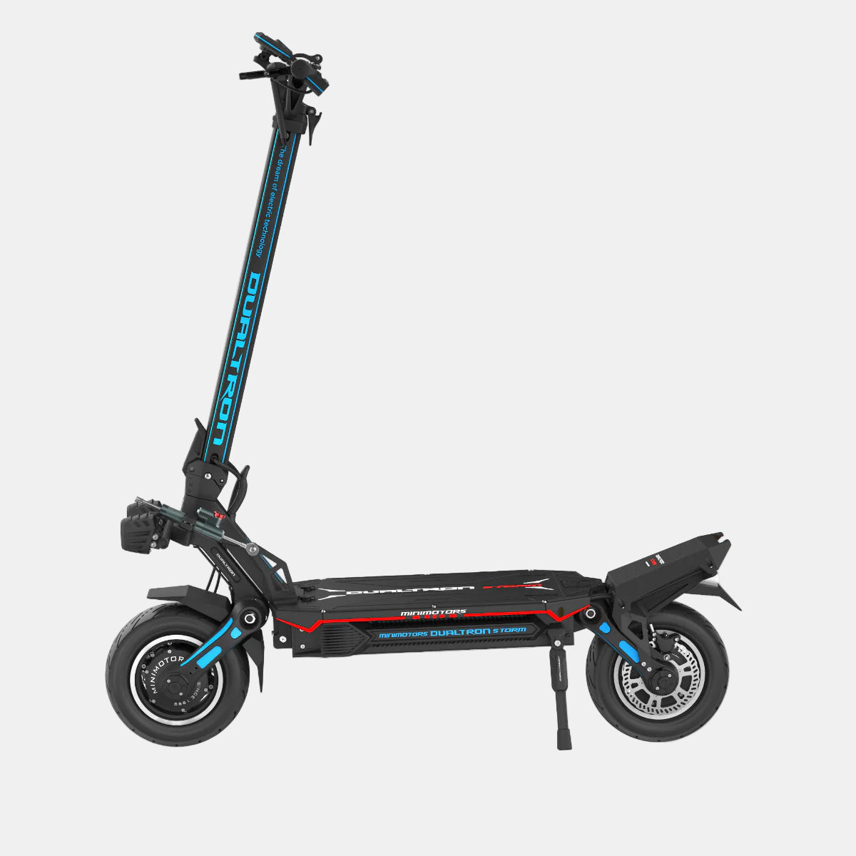 The new flagship powerhouse from MiniMotors. The Storm Limited features the highest voltage of any Dualtron scooter to date, with an enormous 84 Volt, 45 Ah LG battery pack. This equates to up to a whopping 135 miles of range! Power of up to 11,500 watts from the BLDC motors gives insane acceleration and top speed. The Storm Limited comes stock with all the bells and whistles, including a 95.4 Volt fast charger with GX20 charge ports, steering damper, fingerprint reader, and new RSC run flat tires. MiniMotors continues to raise the bar of electric scooter technology with the Storm Limited!